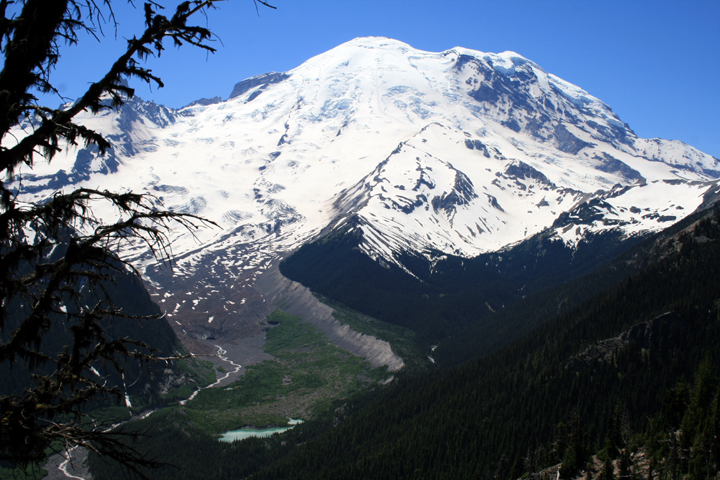 One visits Mount Rainier when the weather is clear; we made the visit on a day with a cloudless sky. The mountain appears close and appears to be an easy hike to the summit, but the Park Ranger said climbing the mountain can be very dangerous; a hiker disappeared just a very weeks ago.