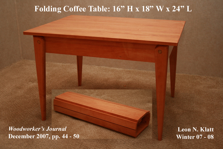 This Coffee Table is used in our RV. The insert in the photograph shows the table when folded up; in this configuration it measures ~7½" X ~4½;" X 24". Folding it into a small package makes it ideal for the limited storage space found in RVs.